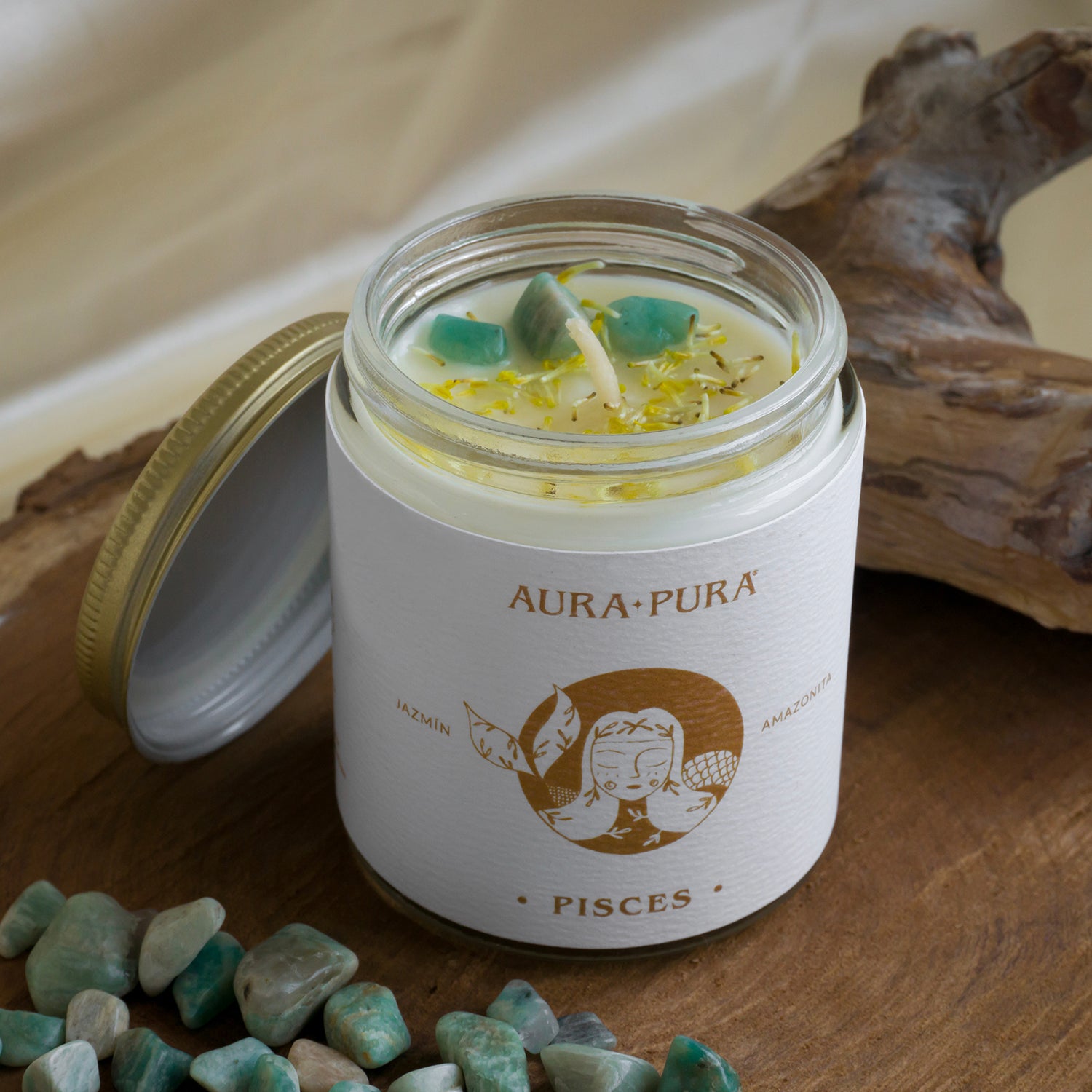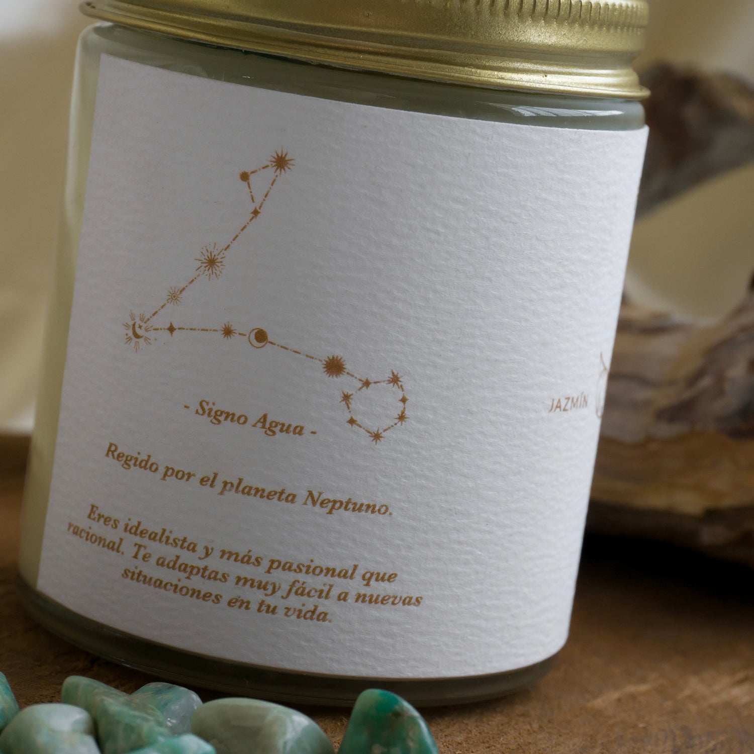 Este signo está vinculado con la energía de los cristales de Amazonita, por ende tu velita lleva varios cristales energetizados de Amazonita, es un cristal calmante en episodios de estrés, mejora la creatividad, nos ayuda a expresarnos y a sacar lo que llevamos dentro.